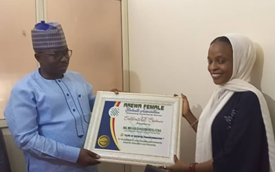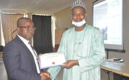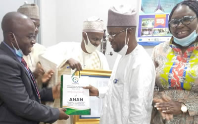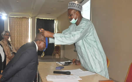 ANAN Abuja Branch Chairman, Wahab Omoniyi presenting Souvenir to Minister of State, FCT, Dr Tijjani Ramatu Aliyu.