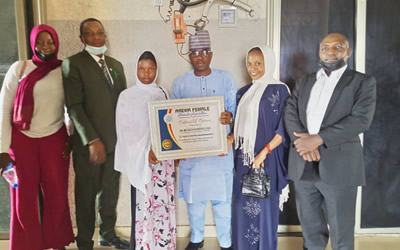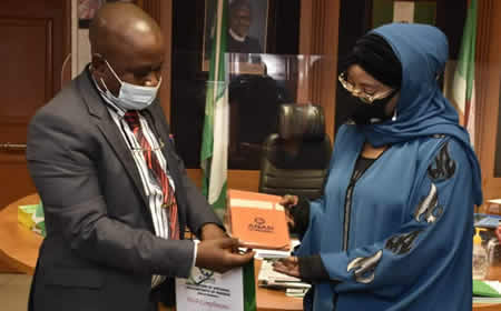 ANAN Abuja Branch Chairman, Wahab Omoniyi presenting Souvenir to Minister of State, FCT, Dr Tijjani Ramatu Aliyu