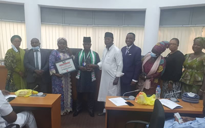 ANAN Abuja Branch Chairman, Wahab Omoniyi presenting Souvenir to Minister of State, FCT, Dr Tijjani Ramatu Aliyu.